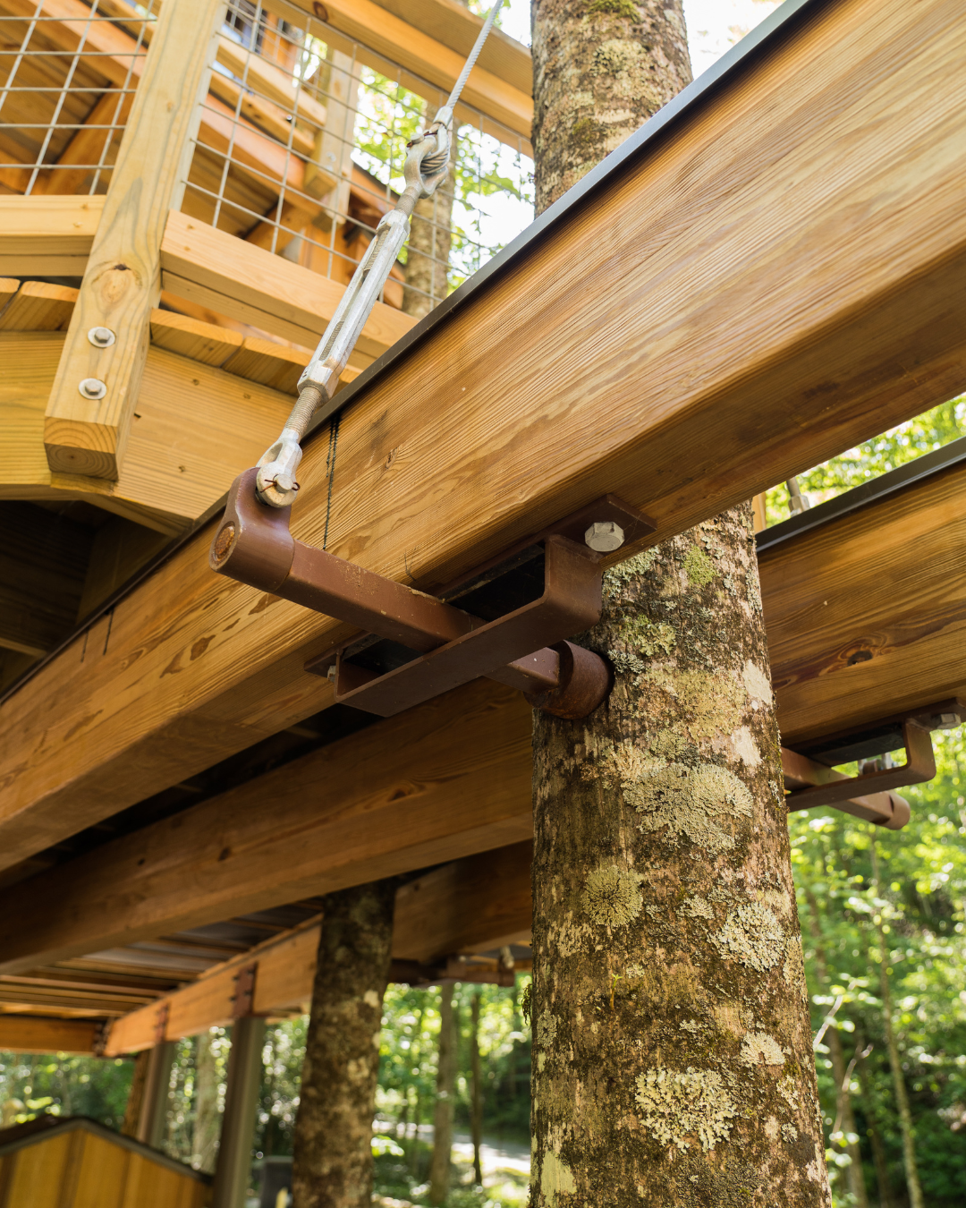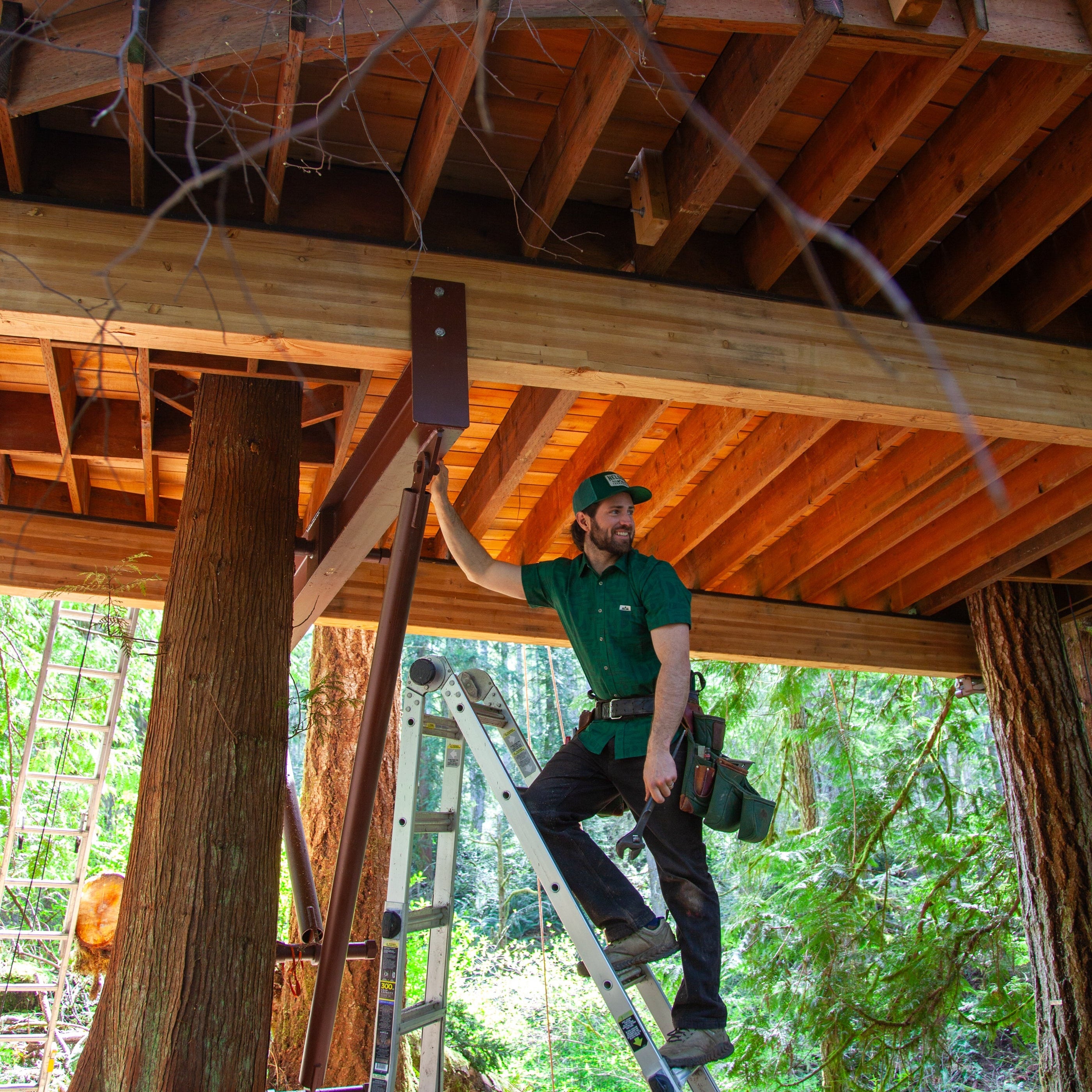 The Nelson Treehouse art & science of building safely and sustainably up in the trees is founded on the use of the highest-quality, heavy-duty, specialized treehouse hardware. We have spent over 30 years consulting with and working alongside carpenters, arborists, and engineers to develop the hefty hardware we trust in every treehouse we build.
